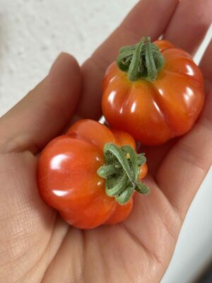 Ich habe diese Sorte im Jahr 2024 das erste Mal angebaut und bin begeistert, wie viele Blüten und Früchte sie hat! Unglaublich! Und durch die gerippte Art, sehen die kleinen Tomaten wirklich wie Akkordeons aus. Einfach süss!