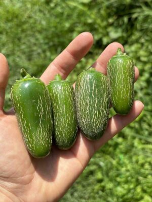 Die Early Jalapeño Chili ist eine früh abreifende Jalapeño mit saftigen, fleischigen Fruchtwänden und bis zu 8 cm langen Früchten. Ihr Geschmack ist aromatisch und durch die “milde” Schärfe auch zum rohen Verzehr geeignet. Jalapeños gehören zu den wenigen Chilis, die auch im grünen, unreifen Zustand sehr gut schmecken. Sind sie rot ausgereift, bekommt der Geschmack eine angenehme Süsse. Durch das frühe Reifen, eignet sich diese Sorte auch zum Anbau in Regionen mit kurzer Vegetationsperiode.